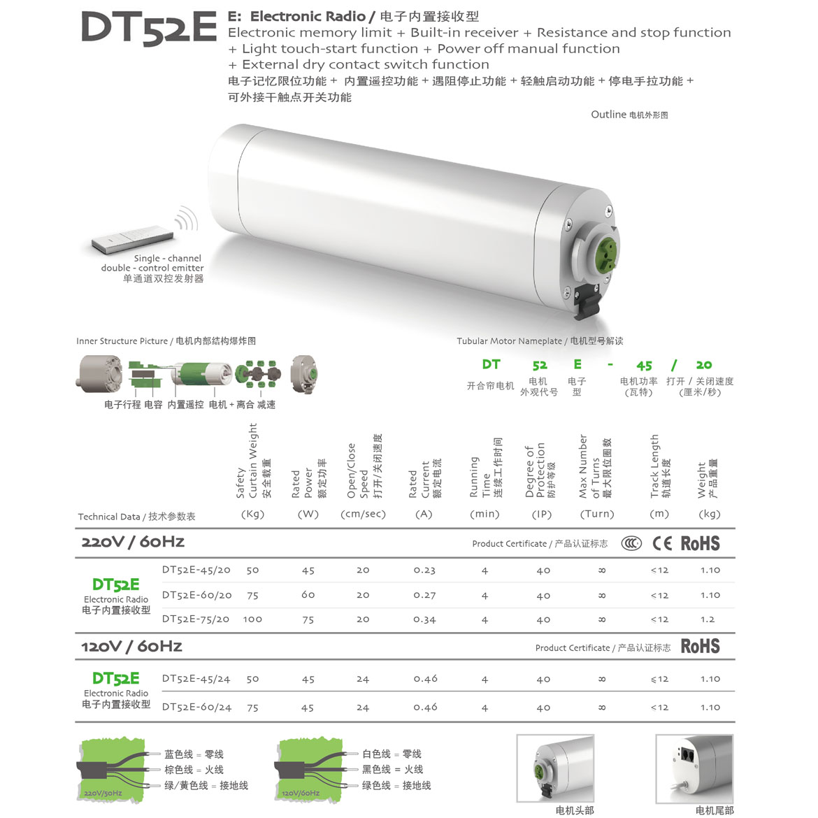 電子記憶限位功能+遇阻停止功能+停電手拉功能+可外接干觸點開關功能
