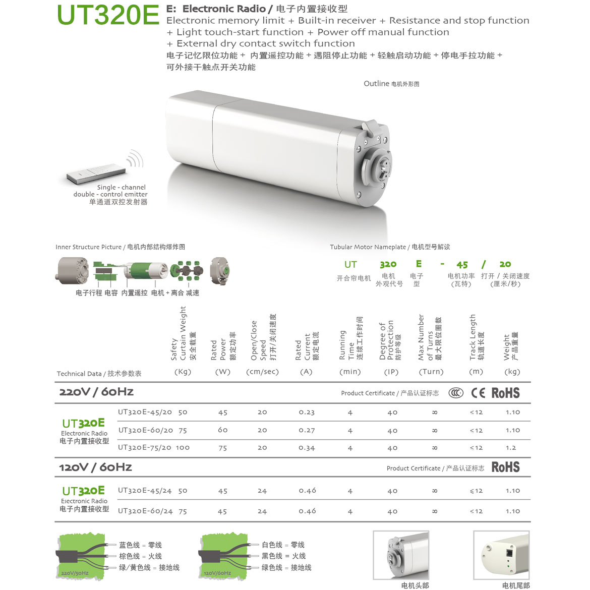 電子記憶限位功能+內(nèi)置遙控功能+遇阻停止功能+輕觸啟動(dòng)功能+停電手拉功能+第三行程點(diǎn)功能+可外接干觸點(diǎn)開(kāi)關(guān)功能